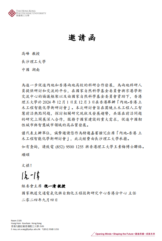 说明: 1、邀请函和本次行程附公示表格后。 2、如对公示内容有异议,请署实名通过信函或电话方式向国际交流处反映。 地址:云塘校区一办公楼705室邮编:410114 联系电话:0731-85258783邮箱:international@csust.edu.cn